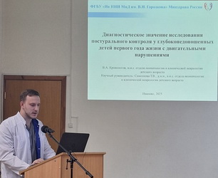 I место занял младший научный сотрудник отдела неонатологии и клинической неврологии детского возраста Кривоногов Владислав Андреевич с докладом на тему «Диагностическое значение исследования постурального контроля у глубоко недоношенных детей первого года жизни с двигательными нарушениями».
