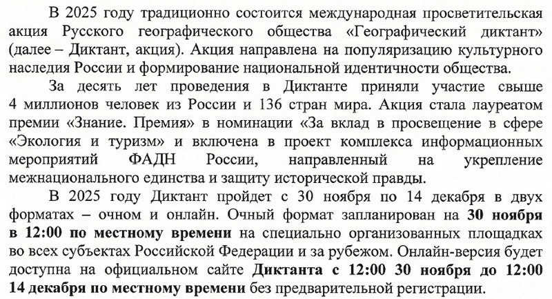 Приглашаем принять участие в международной просветительской акции Русского географического общества «Географический диктант»