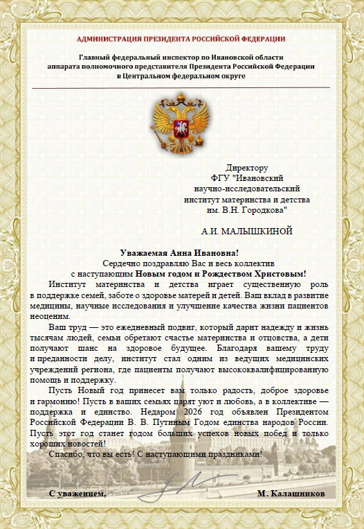 Федеральное государственное бюджетное учреждение "Ивановский научно-исследовательский институт материнства и детства имени В.Н. Городкова" Министерства здравоохранения Российской Федерации