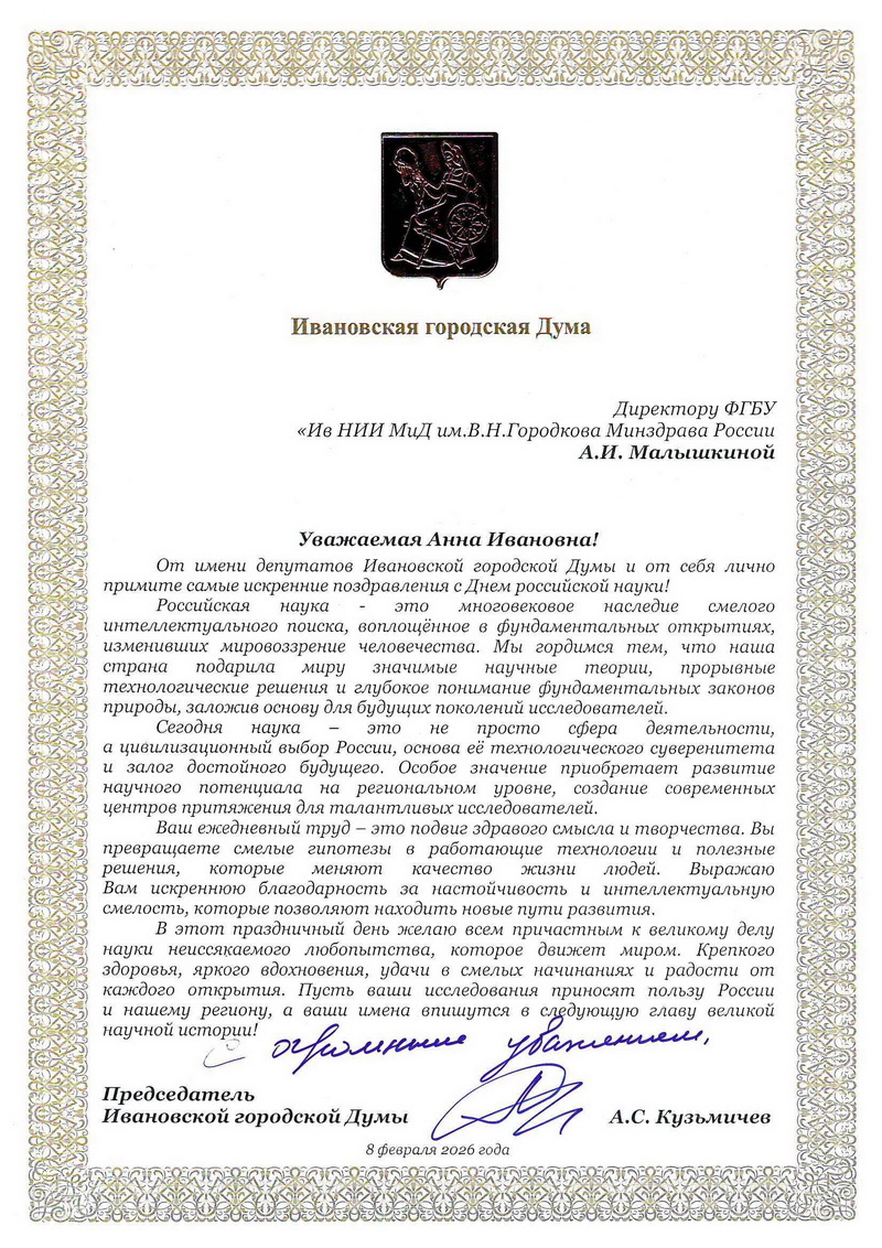 Федеральное государственное бюджетное учреждение "Ивановский научно-исследовательский институт материнства и детства имени В.Н. Городкова" Министерства здравоохранения Российской Федерации
