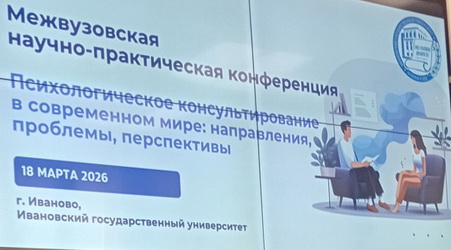 18 марта 2026 года на базе ФГБОУ Ивановского государственного университета состоялась межвузовская научно-практическая конференция «Психологическое консультирование в современном мире: направления, проблемы, перспективы». Актуальность темы продиктована усилением базальной тревоги в обществе, аномии[без норм и правил], потребностью населения в психологической помощи в трудные времена. Цели конференции: обмен опытом специалистов, работающих в сфере психологического консультирования, продвижение профессиональных стандартов психологического консультирования, установление профессиональных связей психологов, работающих в разных организациях, знакомство студентов с деятельностью практических психологов. Сотрудник института психолог М. А. Каталова выступила с докладом на тему "Особенности психологического консультирования в сложных жизненных ситуациях (невынашивание, перинатальные потери, не эффективность ЭКО, постразводная ситуация. Было обращено внимание слушателей в необходимости осмысления новой реальности, в которой живет современный человек. Психологическое консультирование сегодня — это не просто «решение проблем», а помощь в навигации по сложному, турбулентному миру.