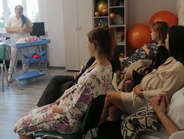 С психологом Каталовой М. А. будущие мамы написали письмо своему ребенку с целью осознанности своего поведения и влияния на развитие и воспитание малыша. Встреча закончилась слушаньем музыки С. Свиридова, В. Моцарта, колыбельной "Спи моя радость, усни". В занятии приняли участие 10 будущих мам.