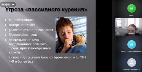 21 октября 2025 года ординатором первого года жизни Обуховой Кариной проведен вебинар для школьников «Табакокурение и здоровье», вебинар включал вредное действие всех форм табакокурения, в том числе вейпов.Подключались 78 школ, отметили интересное и полезное содержание вебинара.