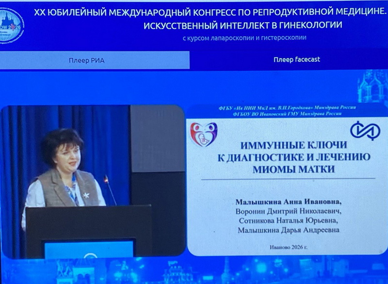 Доклад от коллектива авторов на тему "Иммунные ключи к патогенезу и лечению миомы матки" основан на фундаментальных данных, полученных в нашем институте за последние годы, получил высокую оценку Лейлы Владимировны и вызвал интерес аудитории.