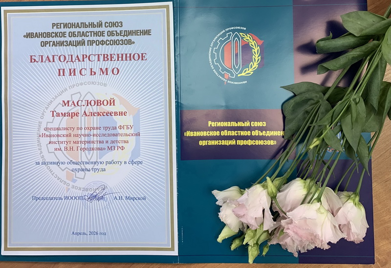 28 апреля 2026 года состоялся II Пленум областного комитета Ивановской областной организации профсоюза работников здравоохранения, приуроченный празднованию Всемирного дня охраны труда, в котором приняли участие председатель нашего профкома Артур Людвигович Шор и специалист по охране труда Тамара Алексеевна Маслова. «Благоприятная психосоциальная рабочая среда: путь к процветанию работников и сильной организации» - такой девиз сегодняшнего дня. За активную общественную работу в сфере охраны труда Тамаре Алексеевне вручили Благодарственное письмо Регионального союза «Ивановское областное объединение организаций профсоюзов».